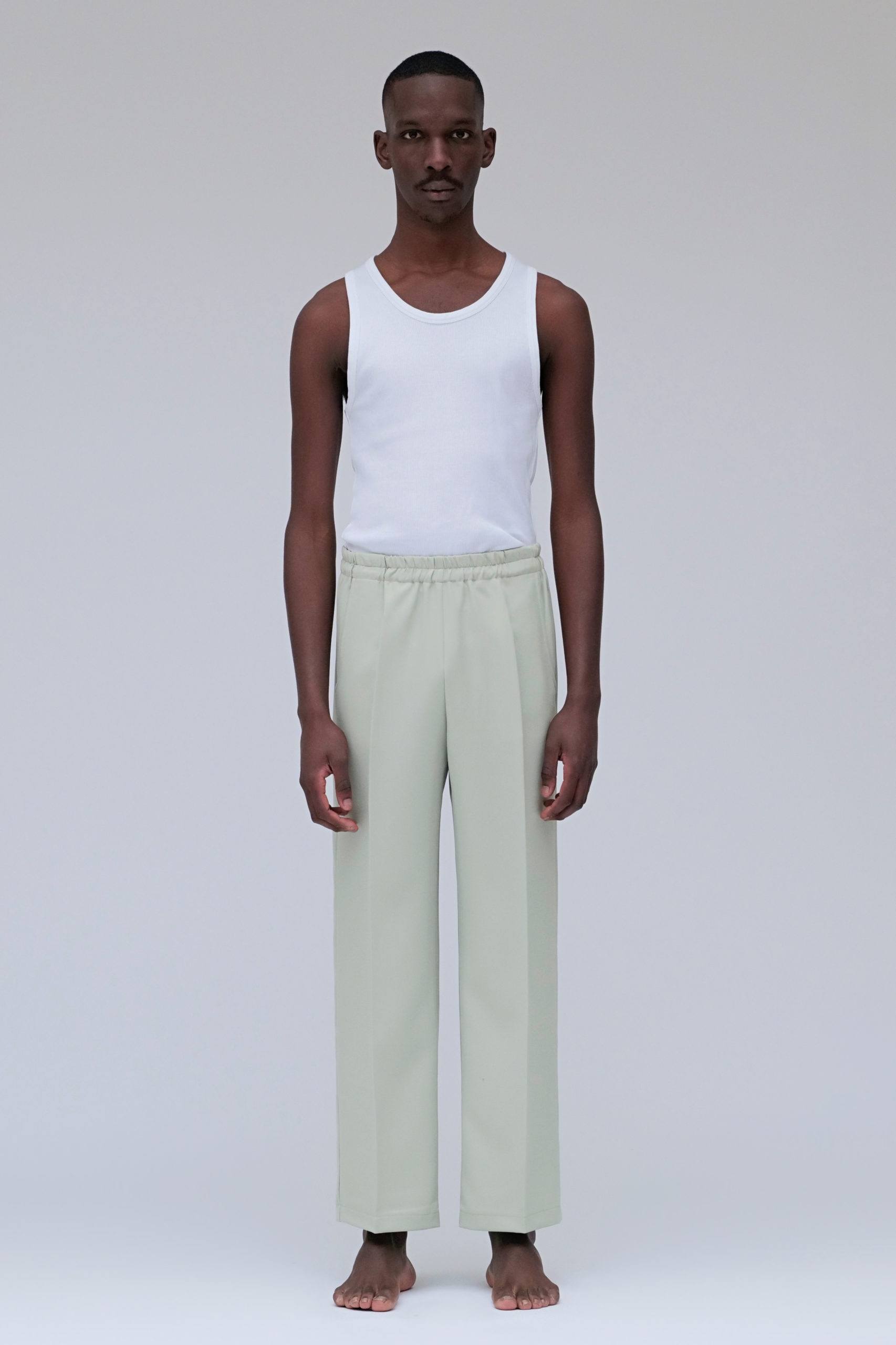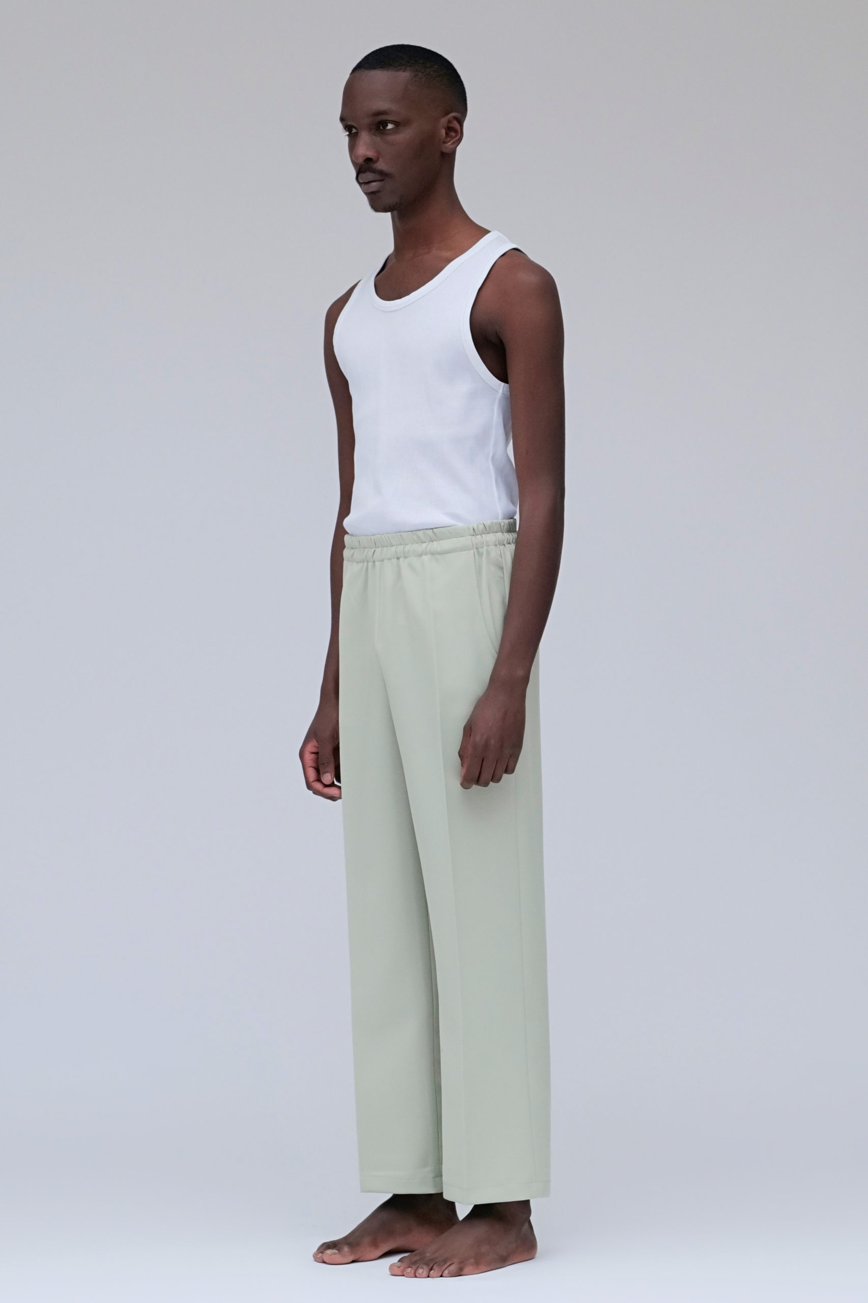 Pantalon avec taille élastique réglable par cordon intérieur.